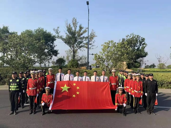 10月1日清晨,部分項目舉行升旗儀式。武漢保安員沐浴在朝陽下,唱著莊嚴的國歌,目視國旗冉冉升起。這一刻,我們與全國13億同胞一起,為祖國驕傲。